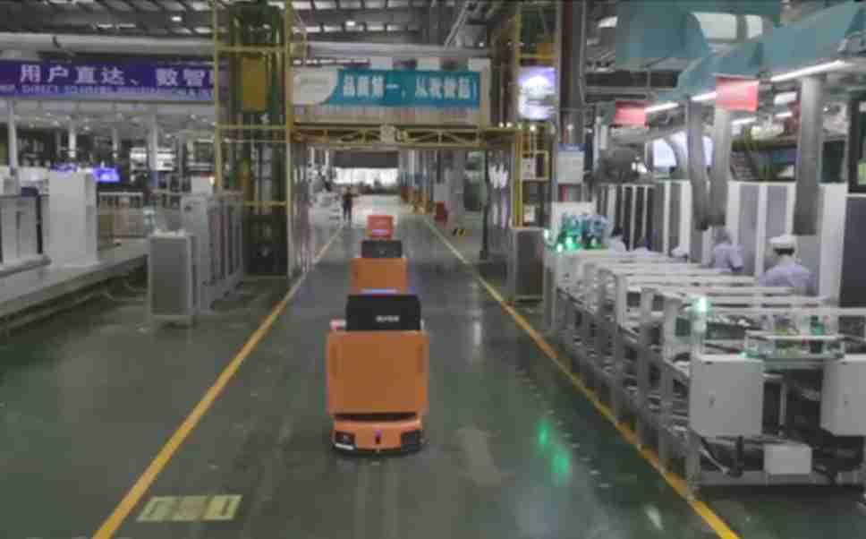 为车载冰箱物流配送打造的智能解决方案,,包含产中物流通过潜伏举升AMR搬运至线边,,,,产后成品物流智能仓储,,流程包含产中物流智能齐套入库,,,线边安灯叫料AMR智能配送至线边,,,成品入库、、、、出库,,通过无人堆高车机器人,,,,智能仓储管理替代人工作业管理,,实现更高存储、、、更高效率、、、、更具柔性化的解决方案。。